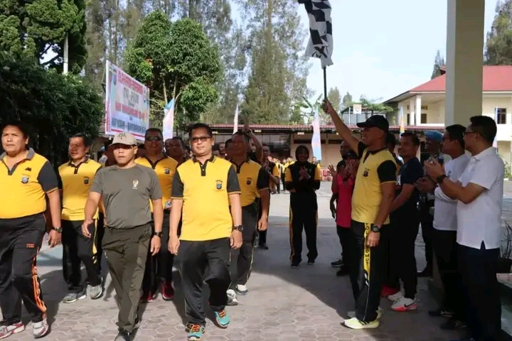 Polres Tanah Karo melaksanakan kegiatan olahraga bersama TNI POLRI
